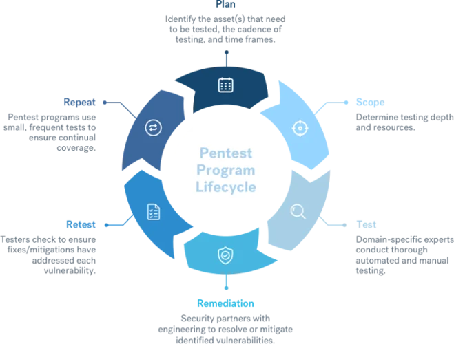 Een security roadmap stelt organisaties in staat om zonder grote investeringen gebruik te maken van het volledige IT-beveiligingsdienstenpakket van secity tegen een vast bedrag per maand. Op deze manier kunnen we een doorlopend plan te creëren die de security structureel verbeterd. Onze security roadmap is gebaseerd op de "hacker cycle", een hacker gaat vaak systematisch te werk met betrekking tot het uitbuiten van zwakheden binnen de IT-omgeving, Een security roadmap is de perfecte "tegengif" om uw IT-omgeving te beschermen.